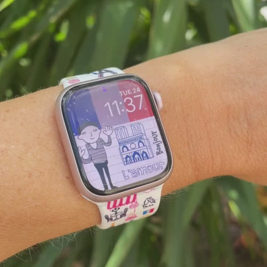 Oh La La Paris Print | Silicone Watch Band for Apple Watch ® + Watch Face Incl.