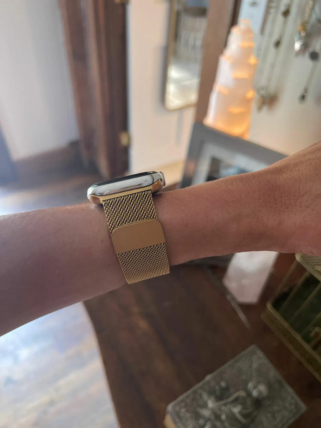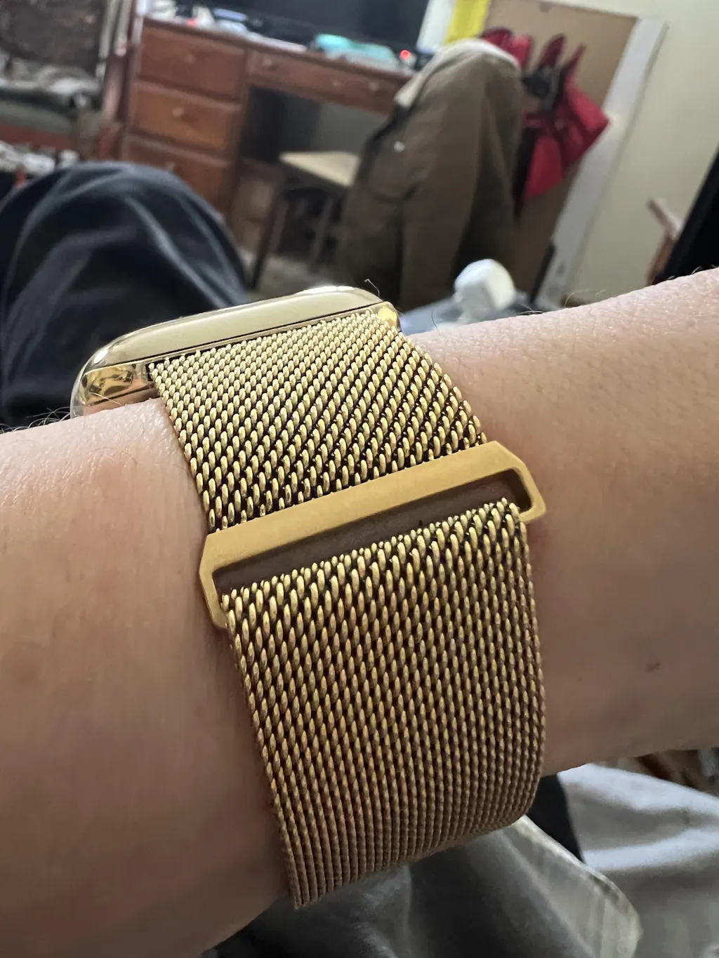 This is a really impressive band. I got the gold to go with my gold Apple Watch. I think the color is great… matches the watch very well. I’m glad that I bought it. The magnetic clasp seems secure enough; I used it while exercising and it held.